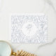 Elegante boda de patrón rosa floral azul polvoriento clásico francés gracias a las tarjetas con monograma novia y novio.
