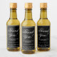 Las etiquetas de estas botellas de mini vino presentan un diseño sencillo pero elegante, con una caligrafía lacada en blanco sobre un fondo negro con un borde enmarcado. Adición perfecta a un bolso de boda, o como favores para los invitados, la familia y los miembros de su fiesta nupcial. El texto dice: ¡Gracias por celebrar con nosotros! Hay espacio para los nombres de la pareja, la fecha boda y el tipo de contenido de vino o botella.