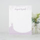 Un elegante membrete para tiendas de novias que venden batas para bodas, baile de graduación y ocasiones formales en lavanda morada, con un florido borde de diseño.
