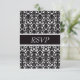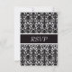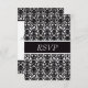 Elegantes tarjetas planas Boda personalizado formal RSVP con un hermoso y elegante patrón de damasco vintage clásico negro y blanco. Estas elegantes invitaciones glamorosas están decoradas en ambos lados. Moda, invitaciones modernas. NOTA: TODAS LAS INVITACIONES EN ZAZZLE TIENEN IMÁGENES PLANAS IMPRESAS. El texto, el tipo de letra y el color de la fuente pueden personalizarse. Si necesitas ayuda para personalizar tu producto, por favor contacta conmigo a través de mi tienda. Estaré encantado de ayudar.