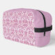Elegante bolsa de tocador rosa floral y botánico. La parte superior y los lados de la bolsa son de un color rosa suave. Fácil de personalizar con tu nombre.