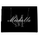 Elegante monograma gran bolsa de regalo. Negro con un monograma de bloque gris y texto de nombre de script blanco.