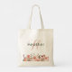 Elegante Bolsa De Tote Floral. Este bonito diseño presenta rosas y dalias rosadas polvorientas, hortensias de crema y hojas de eucalipto verdes y borgoñosos. Personaliza con el nombre y la inicial para un regalo único y elegante o un placer encantador para ti mismo.
