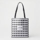 Un patrón de corazones de amor negros en tote blanco, personalizado con sus propias iniciales y nombre