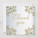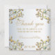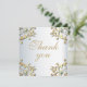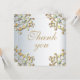 Elegante boda personalizado Gracias diseño de tarjeta con un elegante borde de color dorado adornado con gemas turquesas sobre un fondo metálico plateado. El texto es totalmente personalizable.