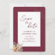 El rojo borgoñés "salva la fecha" para los bodas, con flores de albaricoque acuarela y follaje de jardín. Un diseño botánico contemporáneo, sencillo pero elegante, inspirado en el estilo boho vintage, con monograma en la parte posterior.
