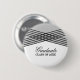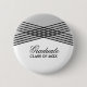 Moderno y moda Elegante botón de graduación deco con un moderno diseño Art Deco de rayas cruzadas con fondo gris claro. Este diseño geométrico clásico y sofisticado es fácil de personalizar con sus detalles de graduación. Para obtener más opciones de personalización, haga clic en el botón Personalizar.