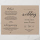 Esta es la tarjeta plegable del programa de la ceremonia de boda, en el tema de escritura elegante de Black Elegance, tarjeta kraft marrón. Está diseñado con acento de desplazamiento que puede ser personalizado con texto personalizado/ personalizado para su fiesta nupcial, detalles de la ceremonia, notas conmemorativas y mensaje de agradecimiento. ** Nota: estos programas de papel de peso de texto llegan planos y requieren plegado para ensamblar.