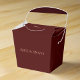 Estas elegantes cajas de tipografía de color rojo oscuro y rosa desmayado son la adición perfecta para cualquier ocasión especial. Con una sofisticada combinación de colores y un diseño chic, agregan un toque personalizado y elegante a tu evento mientras contienen hermosamente tus regalos considerados.
