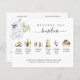 Una línea de tiempo y un programa de boda de color acuático para impresionar a sus huéspedes. Elegantes elementos caligráficos escritos a mano. Delicada vegetación acuática y detalles de esquina floral en una hermosa mezcla de tonos blancos, azules y verdes e imágenes de la línea de tiempo de las acuarelas en tonos dorados Capacidad para personalizar de información en la parte posterior para adaptarse a sus necesidades e incluso desplazarse por las imágenes de la línea de tiempo y el texto a un orden diferente seleccionando "personalizar más lejos". Parte de nuestra colección "Elegant Bliss" con una variedad de invitaciones coordinadas, tarjetas de inserción, tarjetas rsvp, accesorios de correo, guardar las fechas, tarjetas de agradecimiento y señales de eventos y productos.