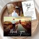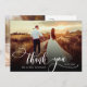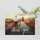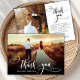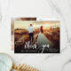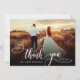 Elegante Boda de Moda Moderna Boho Calligraphy 2 Foto Tarjeta de agradecimiento. Elegante plantilla de agradecimiento de simple boda con una foto vertical completa en el frente con el texto "Gracias" en una tipografía con letras brillantes a mano con tipografía swash tipografía de cola de abertura blanca sobre la imagen y un lado inverso una (1) foto y un mensaje de agradecimiento prehecho. tarjeta de 2 caras con 2 fotos. Fácilmente para personalizar sus detalles y mensajes. Si prefiere escribir a mano la nota, simplemente elimine el texto de ejemplo para hacer más espacio. Si necesita ayuda o un elemento que coincida, por favor, póngase en contacto conmigo.