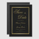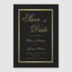 Anuncie a su boda con estilo con este elegante personalizado guardar la tarjeta magnética de fecha con guión falso dorado con su fecha boda y otros detalles para personalizar bordeada en un marco dorado brillante sobre un simple fondo negro. Diseñado por Susan Coffey.