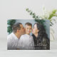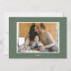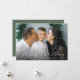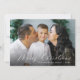 Envíe un sincero saludo con esta elegante tarjeta de vacaciones de caligrafía Feliz Navidad 2. La parte delantera incluye una foto de familia horizontal de sangrado completo con "Feliz Navidad" mostrada en un elegante guión de caligrafía, acentuado por el nombre de tu familia y el año bajo. La parte posterior incluye una segunda foto horizontal ambientada contra un fondo verde sabio profundo con un sutil patrón blanco de nieve punteada. Una manera refinada y atemporal de compartir la alegría de tus Navidades.