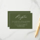 Nuestra elegante colección de bodas caligráficos incluye un hermoso guión de caligrafía blanca con un fondo verde oliva. Personalice esta tarjeta boda con los detalles de la recepción de la boda. La tarjeta de recepción de la boda verde oliva es perfecta para bodas formales e informales de cualquier temporada.