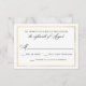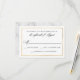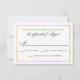 Una elegante tarjeta RSVP de boda con detalles de escritura caligráfica, un borde de línea delgada dorado y textura de mármol en la parte posterior.