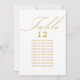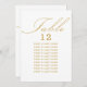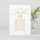 Tarjeta de asiento de mesa boda blanco y dorado con caligrafía elegante y tipografía editable. Diseño minimalista sencillo y moderno que se adapta a los colores bodas. La tabla está escrita a mano y la plantilla está lista para que edite el número de tabla y la lista de asientos de invitados.