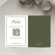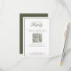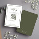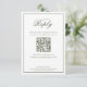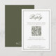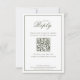 Disfrute de la sofisticación intemporal con esta elegante carta de matrimonio RSVP en un minimalista diseño verde oliva oscuro. Con su guión clásico de caligrafía y su tipografía tradicional, aporta un toque de elegancia tradicional a su papelería boda. La plantilla de códigos QR ofrece una forma moderna para los clientes del RSVP, complementada con la encantadora redacción de la amable respuesta. Esta elegante tarjeta de respuesta es perfecta para un diseño formal elegante y emparejados hermosos con su suite de papel.