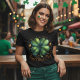 Esta elegante camiseta del Día de San Patricio presenta un ilustracion de color acuático de un trébol de cuatro hojas con el texto ‘Feliz Día de San Patricio’ con letras decorativas de oro.