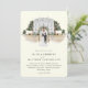 Elegante casa de campo | Invitación a la boda de Villa - Invite a la familia y a los amigos a su alegre evento con nuestra elegante casa de campo | Invitación a la Boda de Villa con un pintoresco ilustracion acuático de una mansión de campo opulenta con novia, novio y vegetación. Esta invitación es perfecta para un boda de cualquier temporada.