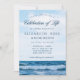 Invitación a la invitación del evento Celebration of Life Memorial con hermoso cielo azul y fotografía de olas y elegante tipografía de escritura. Personalice el texto para su evento. Invitar a la familia y amigos a compartir recuerdos e historias favoritas en la amorosa memoria del tiempo pasado juntos y rendir homenaje a un miembro de la familia o amigo.