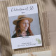 Elegante celebración de la invitación a la foto de la vida. Simple invitación funeraria con un tema botánico. El guión y las fuentes modernas son elegantes y limpias. El sentimiento sincero es genuino y apropiado. Todos los campos de texto son personalizables si desea crear su propio sentimiento o mantener lo que se le ha proporcionado. Personaliza con tu información y foto para crear una celebración de la vida invitante con eso es clásico con un toque moderno. Puede encontrar más opciones conmemorativas con este tema general en la Elegant Watercolor Leaf y Branch Memorial Collection en la tienda de diseños de reunión.