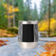 ¡Que el cuarto aniversario del boda de lino sea una celebración inolvidable con este tumbler conmemorativo de vino sin tallo de acero inoxidable! Las elegantes letras con confeti hexagonal sobre un fondo de lino gris añaden un toque memorable a esta ocasión especial y un hito. Personalizar con el nombre de la pareja, fecha de matrimonio y mensaje de felicitación. El reverso muestra un diseño idéntico. Diseño © W.H. Sim. Ver más en zazzle.com/expressionsoccasions
