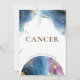Disfrute de un tema de constelación celeste con nuestros signos de constelación. Tarjeta de nombre de tabla de constelación de cáncer con exquisitas manchas de acuarela y mapa celestial del globo con constelaciones en la parte delantera. La parte trasera con un hermoso diseño de galaxia acuarela con la constelación de Cáncer en el centro. Diseño con tonos azul, marina, turquesa, violeta, magenta, fucsia y acuarela dorada. Parte de una colección con muchas tarjetas de nombre de tabla de constelación disponibles, así como tarjetas de tabla de asientos, carteles de plan de asientos, menús y más. Si necesita cualquier otro nombre de constelación que no esté disponible en nuestro conjunto de colecciones, por favor, no dude en cambiar el nombre usando el cuadro de texto de tabla proporcionado, para que pueda completar su conjunto.