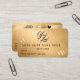 Esta es la tarjeta de visita perfecta para una mujer de negocios moderna, elegante, femenina y moderna. Este diseño presenta un fondo metálico dorado, simple pero glamuroso y de moda falsa, con detalles de oro falsos, diseñado en el estilo tierno, único e inteligente de una tarjeta de crédito. Es la manera perfecta de permitir a sus clientes comprar un regalo para su familia y amigos y al mismo tiempo promocionar su negocio. ***NOTA DE DISEÑO IMPORTANTE: Para cualquier solicitud de diseño personalizado, como solicitudes de productos coincidentes, cambios de color, cambios de posición o cualquier otra solicitud de cambio, haga clic en el botón "CONTACTO" o envíe un correo electrónico al diseñador directamente a lafemme.art@gmail.com. Incluso puede enviarle un correo electrónico solicitando un diseño completamente personalizado y nuevo.