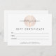 Un motivo elegante de un patrón de hoja de oro rosa en forma circular se combina con su nombre o nombre comercial en este certificado de regalo personalizado. Ideal para salones, spas, animadores, centros de bienestar, tiendas y más. Diseño y arte originales © 1201AM Design Studio