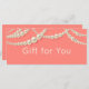Dé el don del estilo con este elegante certificado de regalo de coral y perlas, perfecto para salones, spas, boutiques o cualquier negocio que valore un toque de sofisticación. Con un rico fondo de coral y delicados acentos de perlas, este certificado de personalizable es ideal para cumpleaños, vacaciones, regalos de agradecimiento o ocasiones especiales. Personalízalo con tu nombre de negocio y detalles para una presentación pulida y profesional.