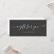 Sencillo y elegante certificado de regalo minimalista en blanco y gris. Este elegante certificado de regalo de guión se ajusta perfectamente a un sobre comercial estándar #10. Perfecto para su marca y negocio.