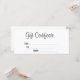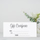 Elegante certificado de regalo personalizado de escritura blanca negra