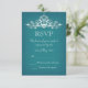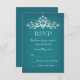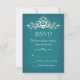 Elegante diseño de tarjetas RSVP de boda con una lámpara de araña de plata muy detallada sobre un fondo azul. Este diseño se presenta en varios productos de papelería para hacer una temática hermosa para todas las papelería boda.