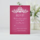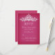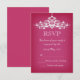 Elegante diseño de tarjetas RSVP para bodas con una lámpara de araña de plata muy detallada en un fondo rosa. Este diseño se presenta en varios productos de papelería para hacer una temática hermosa para todas las papelería boda.