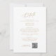 Estas elegantes invitaciones de bodas de oro con RSVP son perfectas para un simple boda. El moderno diseño minimalista presenta caligrafía romántica dorada y blanca con un estilo bohemio de cuento de hadas. Personalizar tus invitaciones nupciales digitales o impresas con detalles en la parte posterior de la tarjeta y haz que tus invitados respondan en línea con un código QR.
