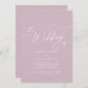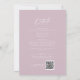 Estas elegantes invitaciones de boda rosa con el RSVP son perfectas para un simple boda. El moderno diseño minimalista presenta una caligrafía rosa rosada y romántica, de estilo cuentacuentos bohemio, perfecta para una boda en primavera o verano en el jardín. Personalizar tus invitaciones nupciales digitales o impresas con detalles en la parte posterior de la tarjeta y haz que tus invitados respondan en línea con un código QR.