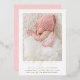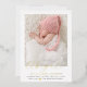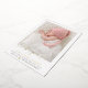 ¡Presentamos una invitación de foto de bebé personalizada y delicada! Este elegante diseño presenta un guión de Relieve metalizado real, lo que lo convierte en la forma perfecta de compartir sus noticias especiales con amigos y familiares. La invitación mide 5 x 7 pulgadas y puede ser personalizada con su propia foto, así como con su propio texto. Todo lo que necesitas hacer es subir tu imagen e introducir el texto deseado, y tendrás una hermosa invitación única en seguida. Celebra tu nueva llegada con estilo con este moderno y sofisticado anuncio de natalidad de fotos!