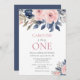 Hagan que la celebración de su primer cumpleaños sea inolvidable con esta sofisticada invitación. El diseño está decorado con hermosas flores rosa y peonía marina, lo que lo convierte en un lugar elegante y encantador. Utilice las herramientas de diseño para personalizar del texto y del tipo de letra. También disponible como descarga digital para la invitación.
