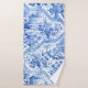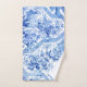 Histórico y elegante patrón Chinoiserie azul y blanco restaurado a partir de textiles del siglo XVIII con flora exótica, pagodas y hombres dedicados a compartir comidas y tuberías.