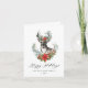Tarjeta de vacaciones de Elegante Ciervo Poinsettia Feliz Navidad Saludo.