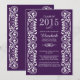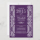 Hermosa clase de invitación a graduarse 2015 con un elegante borde de remolino vintage enmarcando la información de tu fiesta de grado en un fondo morado. Sólo personaliza con tu información de fiesta y estás listo para ir. Disponible en nuestra tienda en una variedad de populares colores escolares. Perfecto para graduación de chicas, graduación de niños, graduación universitaria, graduación de la escuela secundaria, graduación de la escuela primaria o una invitación de graduación.