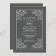 Elegante clase vintage de la fiesta de graduación de 2018 con un hermoso marco de desplazamiento vintage formal sobre un clásico fondo gris de carbón vegetal. Disponible en nuestra tienda en una variedad de populares colores escolares.