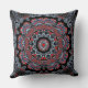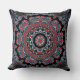 Diseño ordenado de mandala en tonos grises con acentos rojos.