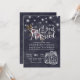 Tómate una bebida y cásate con Boda/Plantillas de tarjetas de invitación para duchas nupciales.- Elegante Jar de masón y luces de cuerda sobre fondo de línea floral azul de la marina. Un diseño perfecto para tu gran día. ¡Todo el estilo de texto, colores, tamaños se pueden modificar para adaptarlo a sus necesidades!