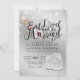 Bebe y sé casada con Boda / Plantillas de tarjetas de invitación para duchas nupciales.- Elegante guión de letras, frascos de masón vintage y luces de cuerdas sobre fondo de damasco floral plateado. Un diseño perfecto para tu gran día. ¡Todo el estilo de texto, colores, tamaños se pueden modificar para adaptarlo a sus necesidades!