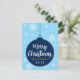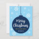 Esta es una tarjeta de vacaciones de invierno simple pero elegante diseñada en fondo azul lleno de copos de nieve. Desea a sus amigos y familiares una feliz Navidad con esta elegante tarjeta de vacaciones de copo de nieve azul junto con la firma de la familia y el año en curso.