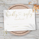 Una simple tarjeta de respuesta RSVP de corazón de letra dorada elegante con tus datos en tipografía chic. Diseñada por Thisisnotme©