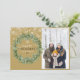 Difunde la alegría de la Navidad con esta elegante tarjeta de vacaciones moderna. Personaliza la parte frontal con tu foto especial, el mensaje de vacaciones, el nombre de la familia y el año. La parte trasera presenta hermosos copos de nieve que caen sobre un fondo dorado que puedes personalizar con tu color de vacaciones favorito. Diseñado por Thisisnotme©