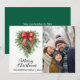 Envía saludos navideños sinceros con esta elegante tarjeta de Navidad que presenta una hermosa corona de abeto ilustrada con acentos de piñas, bayas rojas y un lazo rojo festivo. Perfecta para compartir cálidos deseos con familiares, amigos y colegas, esta tarjeta personalizable te permite agregar tu nombre o apellido y año para un toque personal. Una forma clásica y atemporal de difundir alegría en esta temporada navideña.