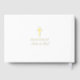 Este elegante libro de Relieves metalizados de verdad hace de este lujoso rincón para una novia y un novio una hermosa manera de expresar su aprecio a los bodas. La cubierta frontal y posterior del libro de visitas presentan la cruz en Relieve metalizado metálico real. Hay un texto de Relieve metalizado metálico real en la portada, en la columna vertebral y en la portada trasera del libro de visitas; el texto es fácil de personalizar en línea antes de realizar el pedido.